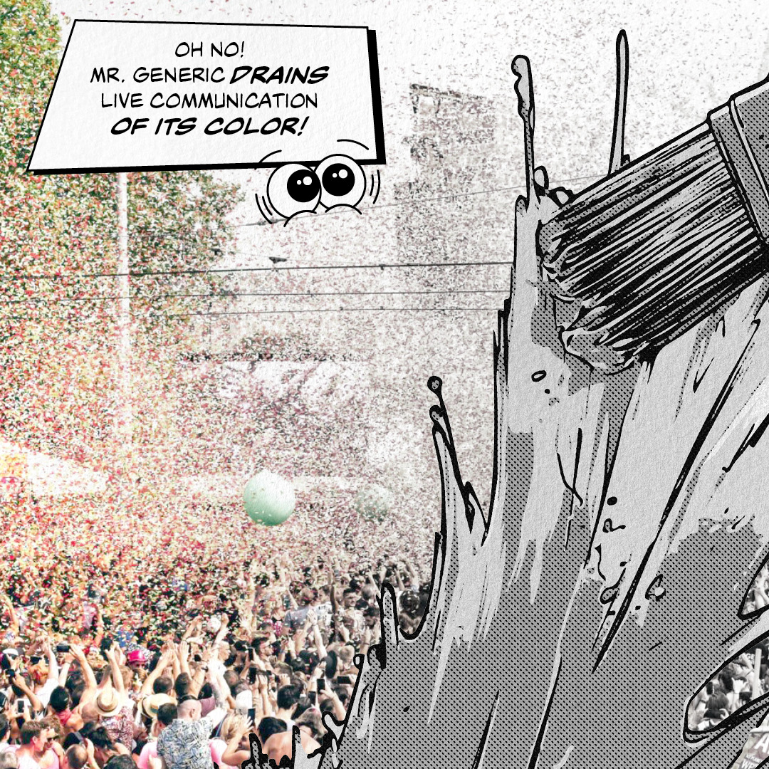 „Live ist die stärkste Form der Kommunikation“, lautet unser Credo, das in all unseren Projekten lebt. Zum Jubiläum blicken wir jedoch über die letzten zehn Jahre hinaus und verwandeln den Anlass in eine epische Bühne: Gut und Böse prallen in einer einzigartigen Inszenierung aufeinander. Auf der einen Seite Kräfte wie Dr. Evil und seine Gefolgschaft, die den Zauber des Live-Moments in Belanglosigkeit verkehren wollen. Auf der anderen Seite alle, die unsere Leidenschaft für echte Begegnung teilen. Erlebe mit uns einen einzigartigen Jubiläumsevent, an dem das Live triumphiert!
