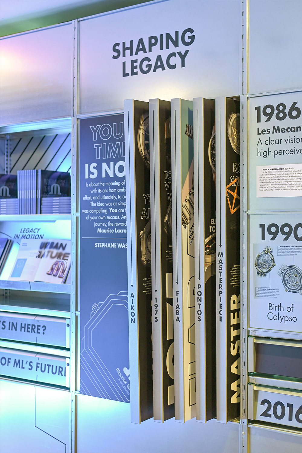 Die Zeitreise endete mit einem Selfie-Mirror, in dem sich die Besucher:innen symbolisch als Teil der ML Crew inszenieren konnten. In diesem Raum wurde zudem das von Maurice Lacroix erstellte Jubiläumsbuch gelauncht – ein Manifest der Markenidentität und ihrer Geschichte.