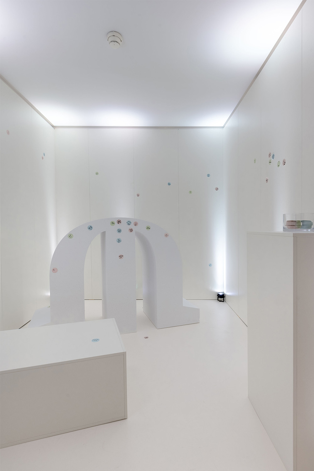 Die FIABA Kollektion wurde in einem komplett weissen Raum inszeniert, der dazu einlud, einen persönlichen Zeitmoment auf farbigen Zifferblatt-Stickern festzuhalten. Die individuell markierten Uhrzeiten konnte im gesamten Raum und auf dem überdimensionalen Maurice Lacroix Logo platziert werden. So entstand im Laufe der Tage eine wachsende Installation aus Farben, Emotionen und Erinnerungen als Ausdruck der spielerischen Eleganz der Kollektion.